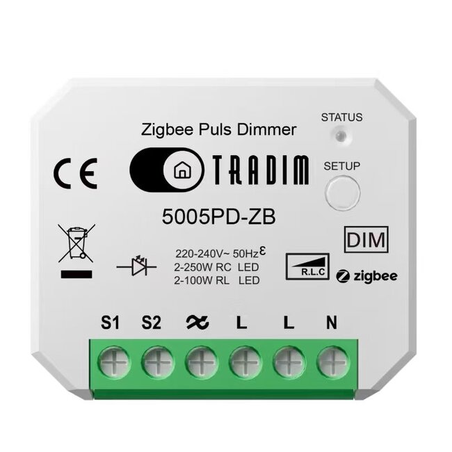 The Tradim 5005PD-ZB is an ultra compact Zigbee push dimmer puck for dimmable LED lighting up to 250W. Install behind an existing push switch and control lighting via Zigbee smart home systems. Read more.